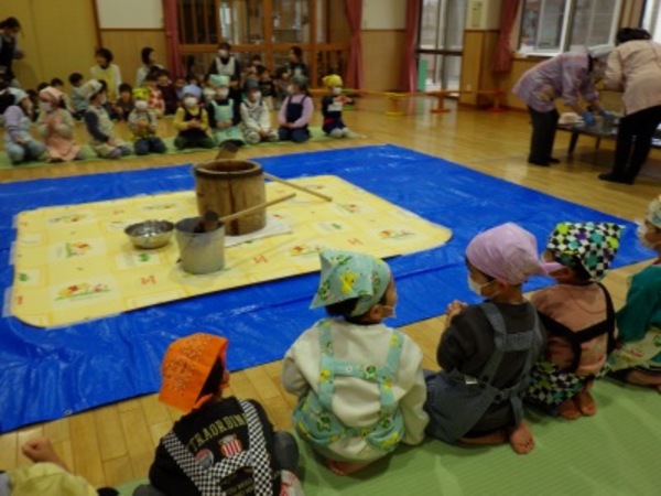 らいちょう組さんは、餅つき体験をしました。