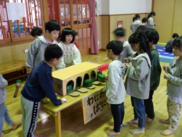 らいちょう組さんが摘んできたよもぎを使い、草だんご作りをしました。